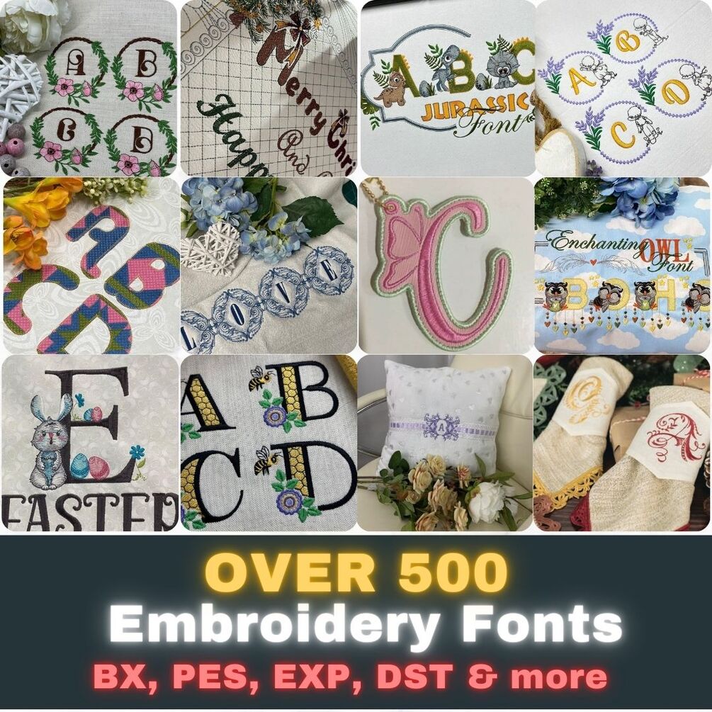 Over 500 high-quality embroidery fonts All Formats: BX, PES, DST, EXP, JEF, HUS, VP3, VIP